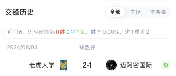 8月21日讯 联盟杯1/4决赛,迈阿密国际迎战老虎大学比赛即将打响。赛前首发出炉,本场梅西缺阵。